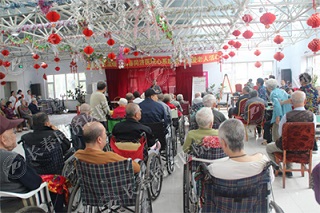 温馨养老院高院长组织老人“排排坐”